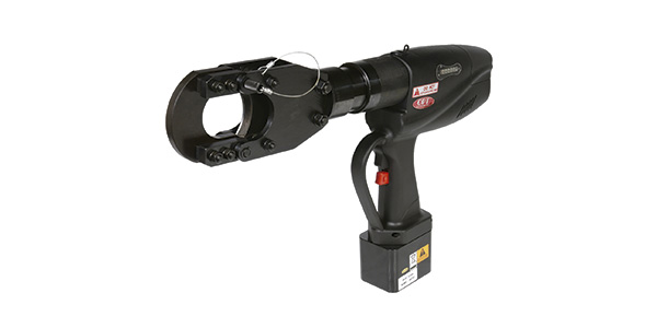 Herramienta electro-hidráulica para corte de conductores de cobre o aluminio de hasta 52 mm de diámetro. Compacta, silenciosa y fácil de operar con una sola mano gracias a su reducido peso y bajo nivel de vibraciones. Diseño ergonómico para garantizar el confort del operador. Desarrolla una fuerza de 12 toneladas, con batería de Ni-MH de 14.4 V. Posee cuchillas de acero de gran resistencia, cabezal giratorio 180º y válvula de corte automático. No corta conductores de aluminio-acero.