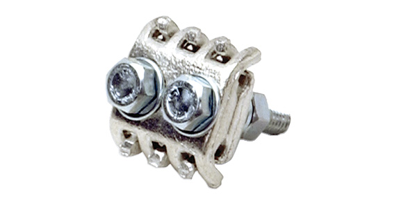 Parallel clamp, with interlocking finger design. Holds conductor firmly in place inside the connector. Manufactured from the highest quality bronze, free of inclusions, inner bubbles and cracks (inner and outer) guaranteeing elevated mechanical resistance. Superior electrical performance. Supplied with zinc plated iron hardware.