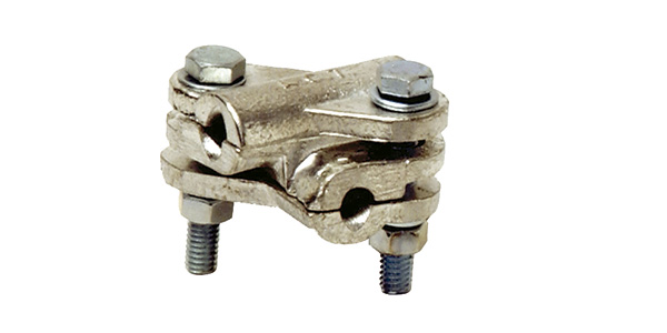 Cable clamp for Cross type connections on copper or aluminum conductors. Manufactured in bronze for Cu to Cu connections, or in aluminum for Al to Al connections.