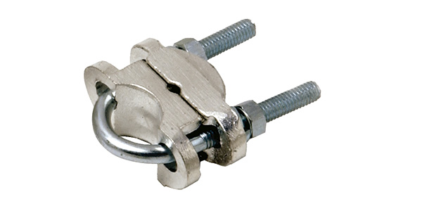 Su fijación se realiza a través de un caballete con forma de U roscada, con su correspondiente tuerca, dejando al conductor paralelo al caño o jabalina. Aloja en su interior un conductor.