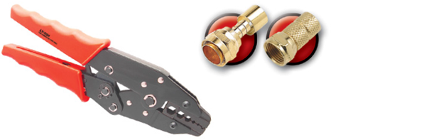 Herramienta a criquet para conectores de cable coaxil RG-6, RG-58, RG-59 y RG-62. Realiza una compresión de tipo hexagonal en el conector o anillo, garantizando la efectividad y larga vida de la conexión. Debe cerrarse hasta que haga tope y automáticamente destraba el seguro del criquet, quedando abierta y lista para la próxima operación.