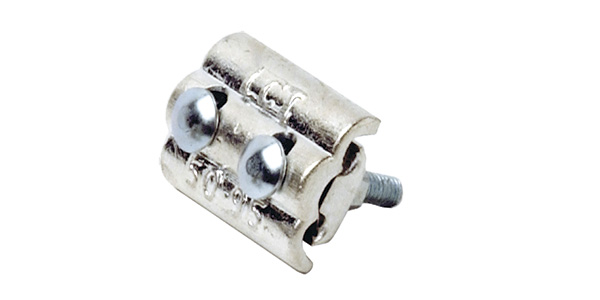 Grampa paralela bifilar fabricada en bronce de alta pureza, garantizando una gran resistencia mecánica y una muy segura fijación.