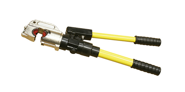 Single body hydraulic tool, for perfoming hexagonal crimps on copper and aluminum lugs and splices, as well as circular compression for C or G type copper connectors. C-shaped head permits extraction through the opening, thus allowing for multiple operations without the need of opening the tool head.