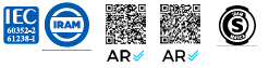 Certificación IRAM norma IEC 60352-2 terminales y uniones de cobre 1.5 a 10mm². Certificación IRAM norma IEC 61238-1 terminales, uniones y morsetería de 10mm² a 800mm². Cumplimiento de normativas legales vigentes según Res. Nº 26/2025 y 236/2024 de la Secretaria de Industria y Comercio. Marcado de Conformidad según Res. Nº 237/2024 Anexo 1/2024 de la Dirección Nacional de Reglamentos Técnicos.